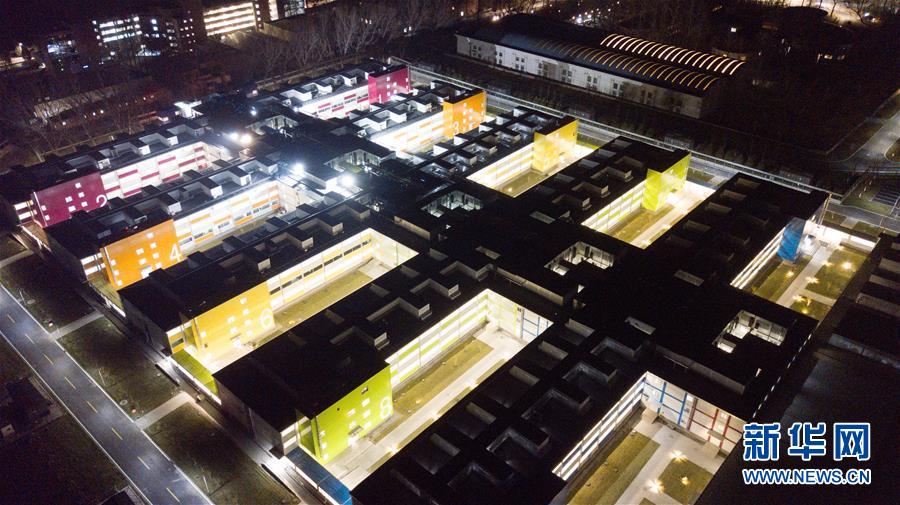 3月16日晚拍摄的北京小汤山医院局部(无人机照片)。新华社记者鞠焕宗摄