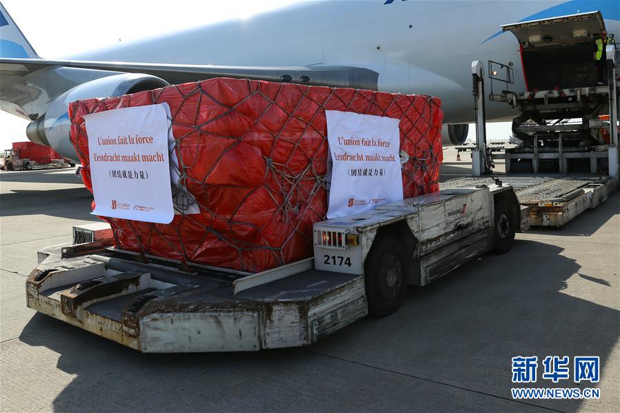 来自中国的30万只口罩当地时间16日中午运抵比利时列日机场。这是欧洲新冠肺炎疫情暴发以来,比利时首次得到大规模外来援助。这批物资由阿里巴巴公益基金会和马云公益基金会提供。 新华社记者 张铖 摄