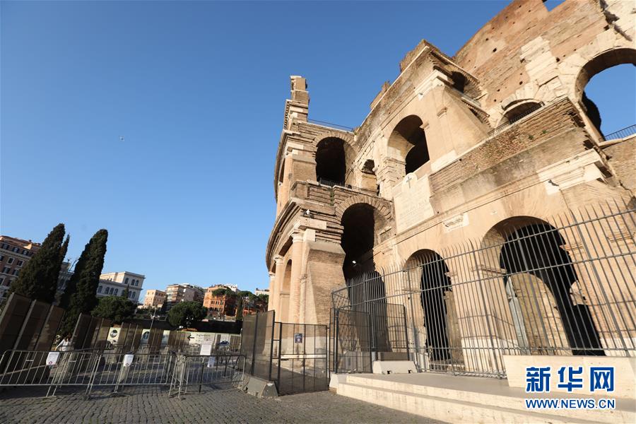 3月16日,在意大利首都罗马,斗兽场因疫情关闭。新华社记者程婷婷摄