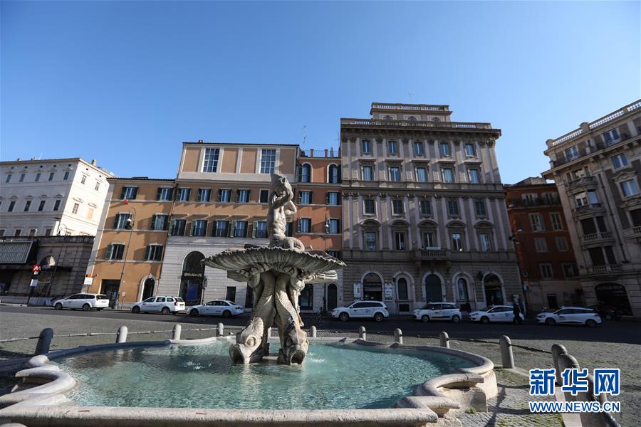 3月16日,在意大利首都罗马,巴贝里尼广场空旷无游人。新华社记者程婷婷摄