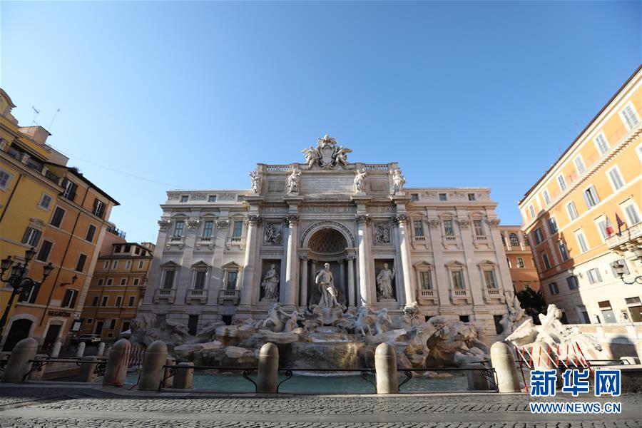 3月16日,在意大利首都罗马,因疫情关闭的许愿池前无游人。新华社记者程婷婷摄