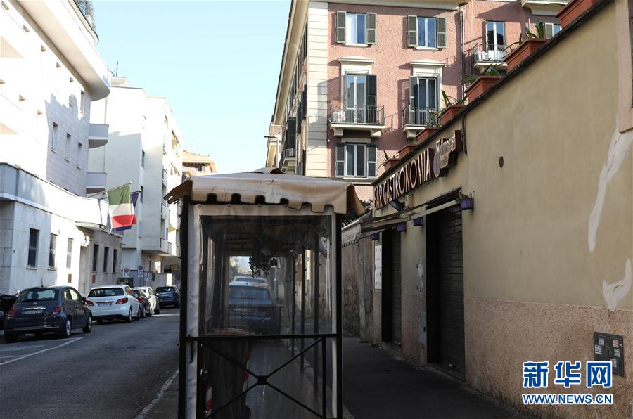 这是3月14日在意大利首都罗马拍摄的空荡荡的街道。新华社记者刘咏秋摄