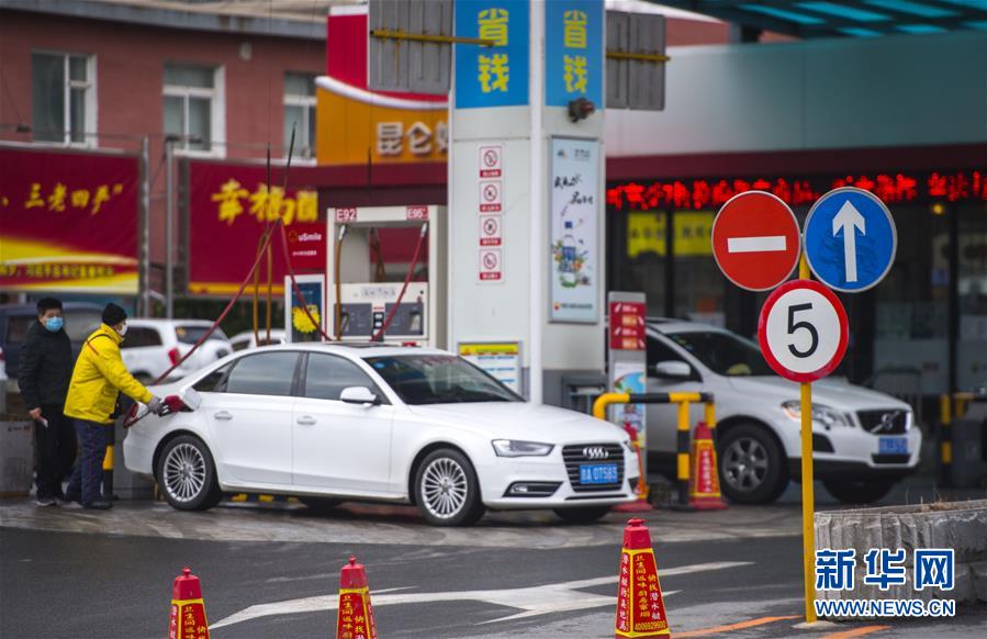 3月17日,吉林省长春市一处加油站工作人员为车辆加油。 国家发展改革委17日宣布,近日国际市场油价持续下跌,按照现行成品油价格形成机制,自2020年3月17日24时起,国内汽油、柴油价格每吨分别降低1015元和975元。折合每升价格下调约8角。此次调价已至每桶40美元调控下限,即俗称的“地板价”,低于40美元部分不再下调。新华社记者 许畅 摄