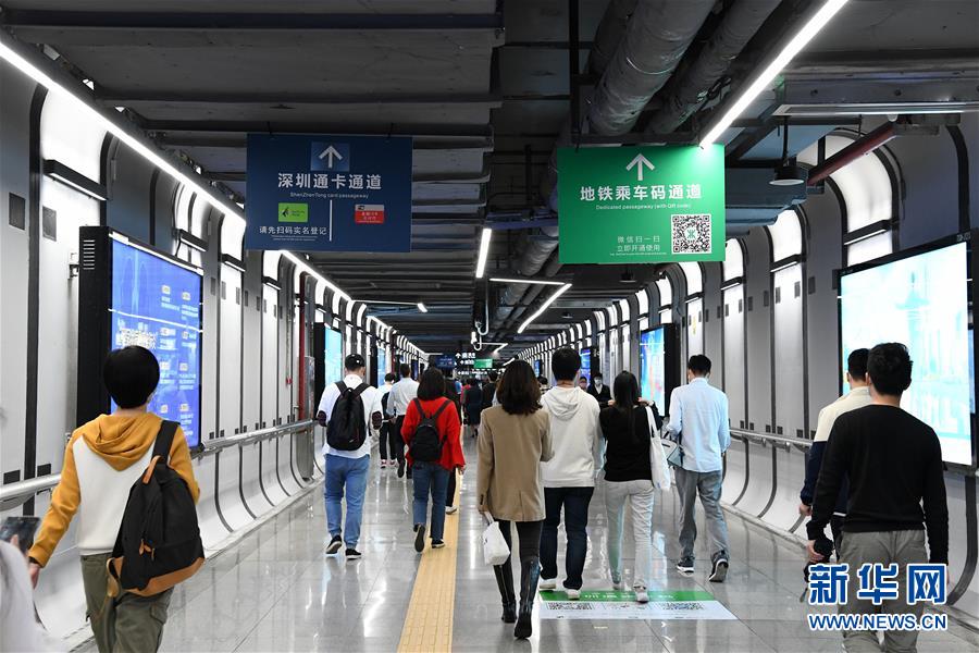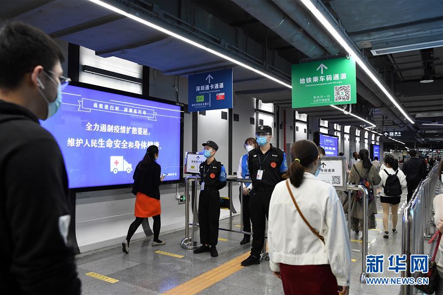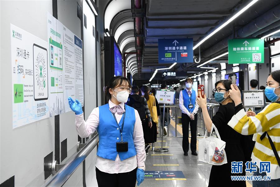 3月18日晚高峰时段,在深圳地铁车公庙站,乘客扫描二维码进行实名登记。新华社记者梁旭摄