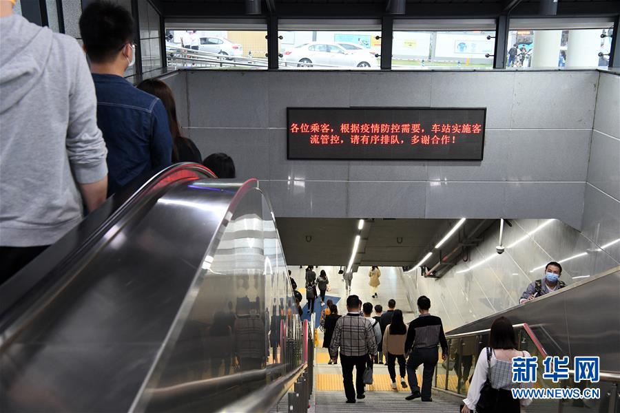 3月18日晚高峰时段,在深圳地铁车公庙站进站通道,电子屏幕提醒乘客车站正在进行客流管控。近期,随着复工复产的持续推进,深圳地铁出现早晚客流高峰。为避免客流聚集拥挤,深圳地铁对11座大客流站点实施常态化客流管控,对17座重点车站采取视情况客流管控。在高峰时段,乘客进入大客流站点需通过站外护栏绕行,分批、间隔、有序进站,使用深圳通卡乘车还需扫描二维码进行实名登记。新华社记者梁旭摄