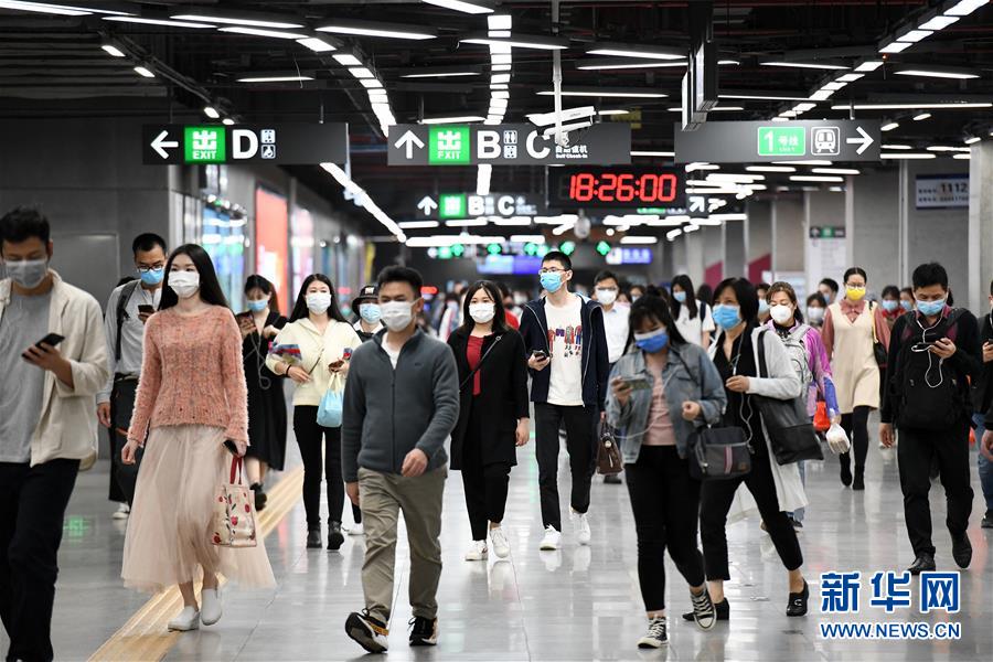 3月18日晚高峰时段,在深圳地铁车公庙站,乘客在站厅内通行。新华社记者梁旭摄
