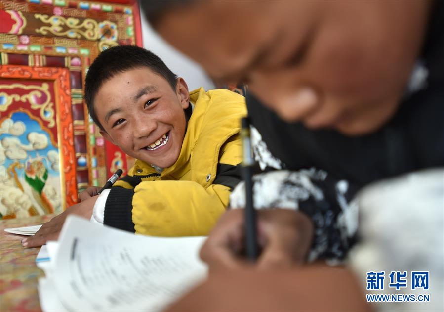 在西藏山南市贡嘎县森布日安置点,14岁的贡觉加错在新家复习功课(1月20日摄)。新华社记者觉果摄