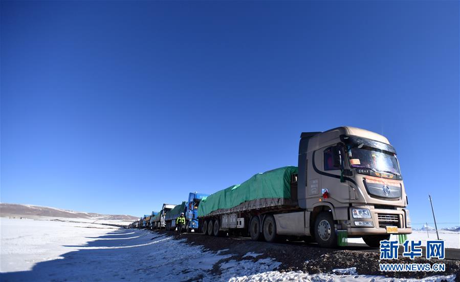 12月23日拍摄的西藏那曲市双湖县牧民的迁徙车队。新华社记者觉果摄