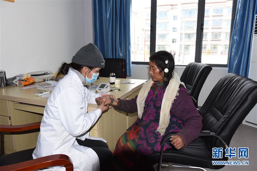 在西藏山南市贡嘎县森布日安置点,医生为搬迁群众看病(1月12日摄)。新华社记者田金文摄