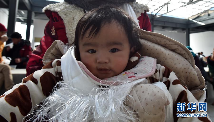 12月23日,在西藏那曲市双湖县出生的7个月大的娟安达瓦在母亲怀里。新华社记者觉果摄