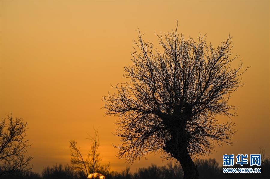 这是在依明家附近拍摄的位于塔克拉玛干沙漠腹地的胡杨(3月18日摄)。新华社记者胡虎虎摄