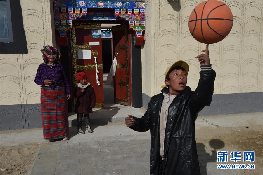 在西藏山南市贡嘎县森布日安置点,尼玛次仁的弟弟(前)在玩球(1月12日摄)。新华社记者周健伟摄