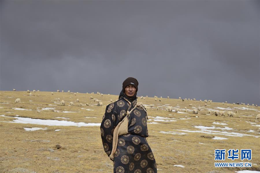 尼玛次仁的爸爸扎西在西藏双湖县雅曲乡牧场放牧(1月9日摄)。新华社记者田金文摄