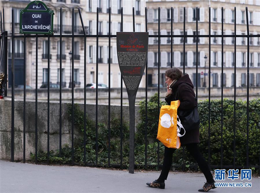 3月18日,在法国巴黎,一名男子买面包归来。新华社记者高静摄