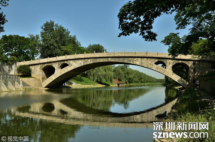 【当下现存最早、保存最完善的古代敞肩石拱桥——赵州桥】赵州桥,又称安济桥,因桥体全部用石料建成,当地称做“大石桥”。建于隋朝年间公元595年-605年,由著名匠师李春设计建造,距今已有1400多年的历史,是当今世界上现存第二座、保存最完整的古代单孔敞肩石拱桥。