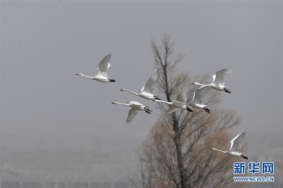 3月18日,候鸟在准格尔旗大路镇的黄河浅滩上空飞行。近日,随着天气回暖,内蒙古自治区准格尔旗大路镇的黄河浅滩迎来大批候鸟。 新华社记者 于嘉 摄