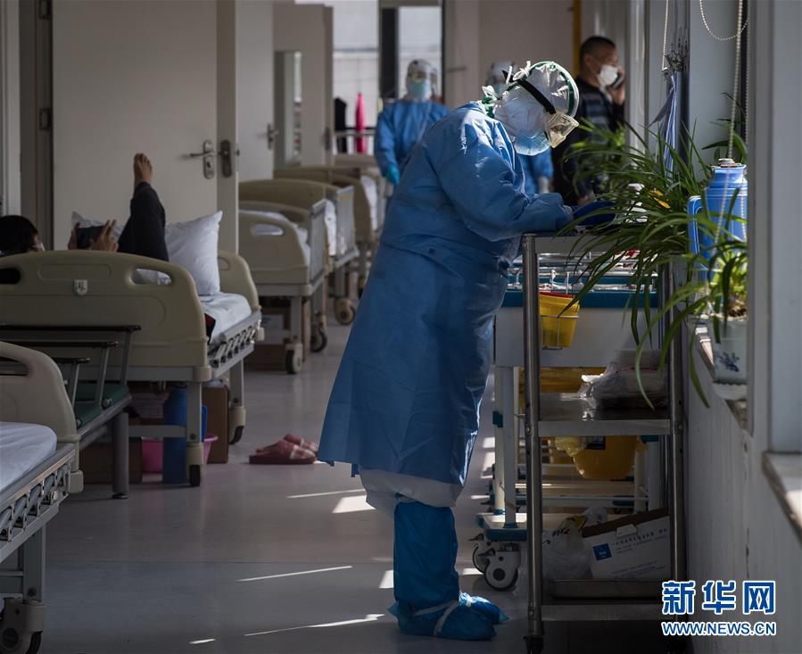 3月19日,在武汉市肺科医院隔离病房,内蒙古医疗队队员陈亮在现场忙碌。 新华社记者 肖艺九 摄
