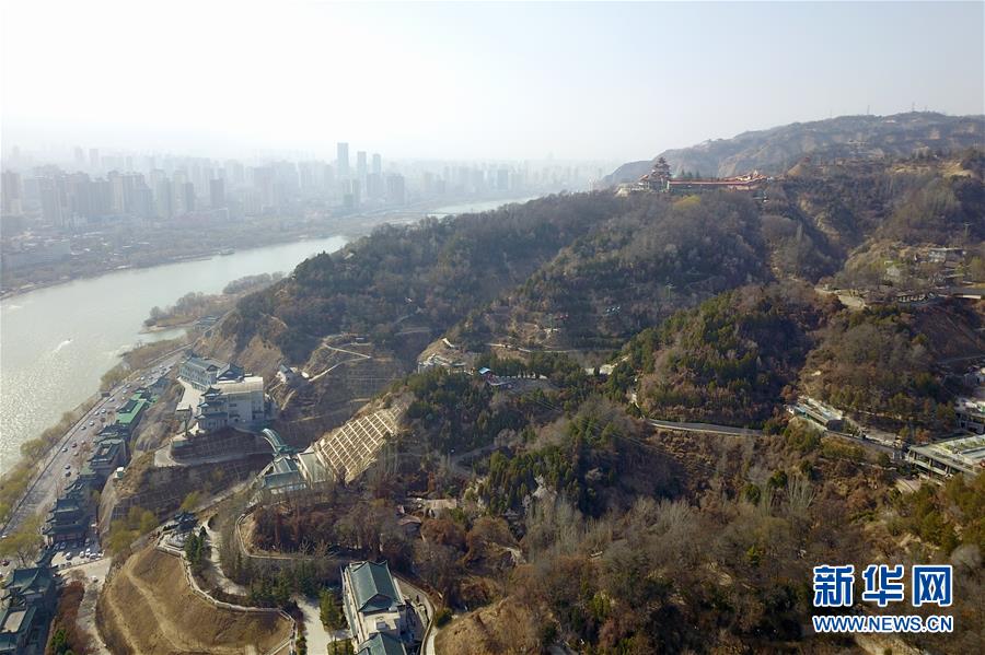 这是3月19日在兰州市城关区拍摄的兰州白塔山公园(无人机照片)。 新华社记者 范培珅 摄