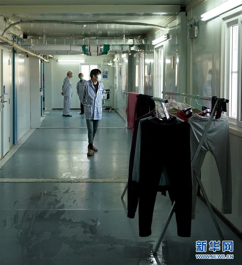患者洗涤的衣物晾在走廊内(3月20日摄)。洗涤用品由护士们免费提供。火神山医院感染三科一病区针对新冠肺炎患者的特点,推出了“家病房”护理模式,从温情照料、精准护理、健康教育、特色照顾等四个方面实施,让患者从入院起就享受家庭的温暖。新华社记者 王毓国 摄