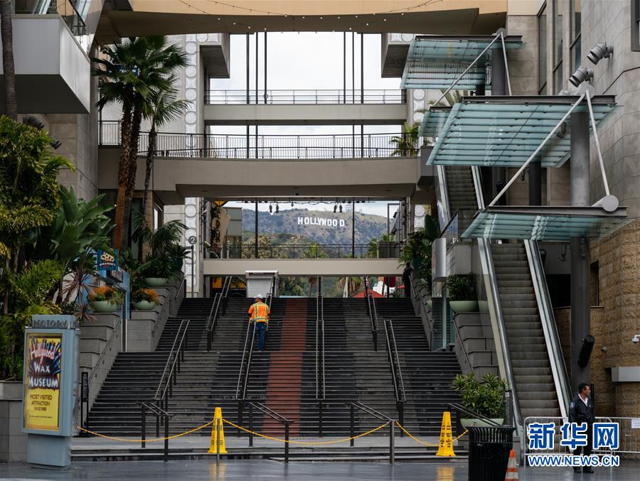3月20日,在美国加利福尼亚州洛杉矶,星光大道上的一家商场停止营业。 新华社发(钱卫忠摄)