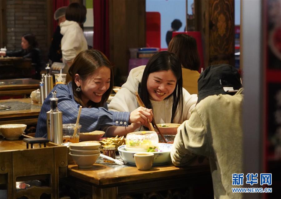 3月21日,在四川省成都市的一家火锅店内,顾客在就餐。近日,在做好新冠肺炎疫情防控措施的基础上,四川省成都市的火锅店逐渐恢复营业。新华社记者李梦馨摄