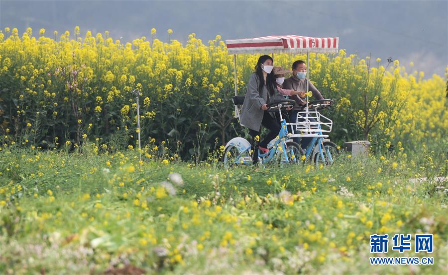 游人在当阳市坝陵办事处精耀村休闲(3月21日摄)。近日,湖北当阳市农业生产和农产品加工加速恢复。截至3月19日,当阳市86家规上农产品加工企业复工复产率为84.9%,51家农业产业化重点龙头企业有48家复工复产,占比达94.1%。新华社记者程敏摄