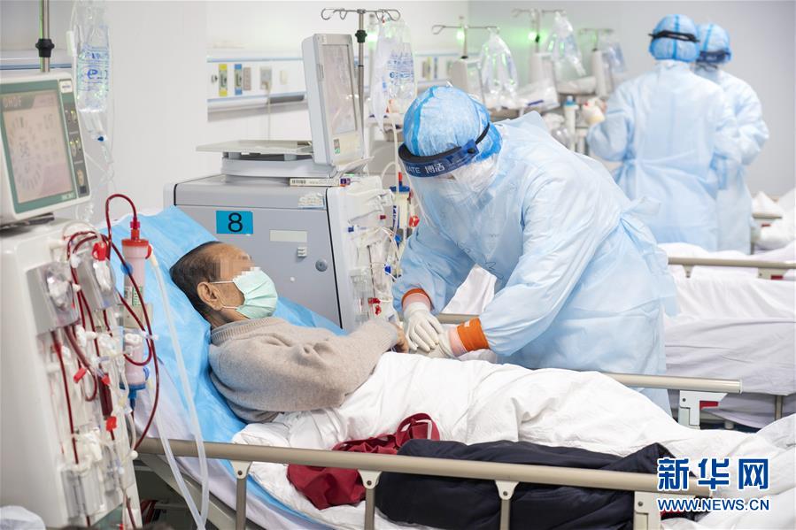 3月21日,在武汉市汉口医院肾内科血液透析室,医护人员为处于新冠肺炎康复期的尿毒症患者做血液透析。新华社记者才扬摄