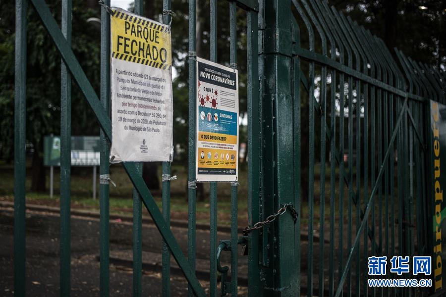 3月21日,为避免人员聚集,巴西圣保罗市伊比拉普埃拉公园关闭了大门。新华社发(拉赫尔·帕特拉索摄)