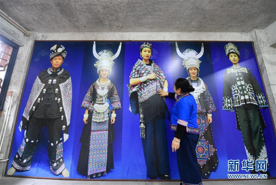 梁小哲在苗族服饰创业孵化基地(3月17日摄)。