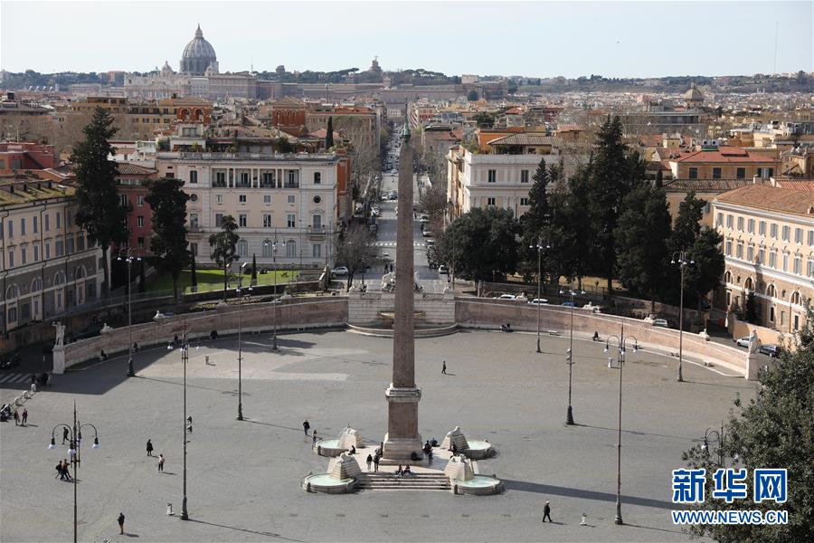3月10日,在意大利首都罗马,人民广场上游人稀少。新华社记者程婷婷摄