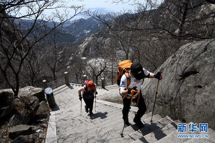 3月24日,游客在崂山上行进。 当日,山东青岛崂山风景区恢复开放。 新华社记者 李紫恒 摄