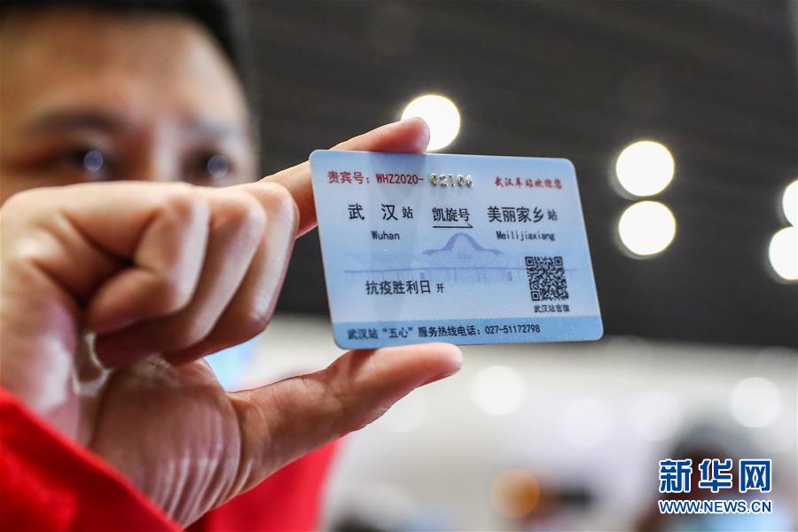 3月25日,一名队员在北京西站展示车票。 新华社记者 张玉薇 摄