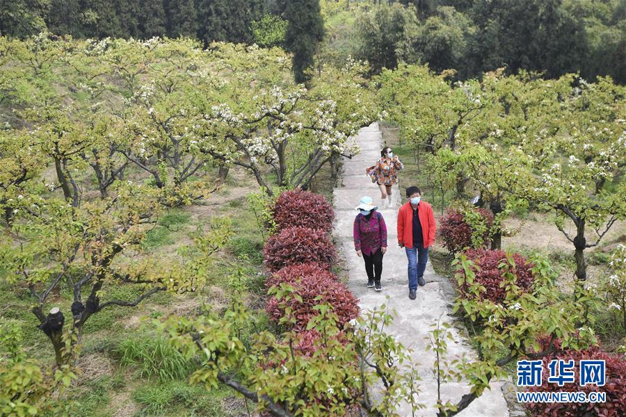 3月25日,游客在放牛坪村游玩。 春日时节,重庆市渝北区茨竹镇放牛坪村春意盎然,村民在田间地头忙碌。随着重庆市突发公共卫生事件应急响应级别从二级调整为三级,放牛坪村迎来了一些游客,安静的小山村也开始热闹起来。 新华社记者 王全超 摄