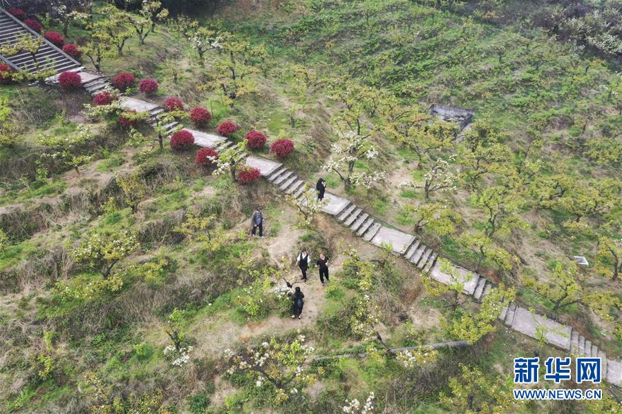 3月25日拍摄的放牛坪村春色(无人机照片)。 新华社记者 王全超 摄