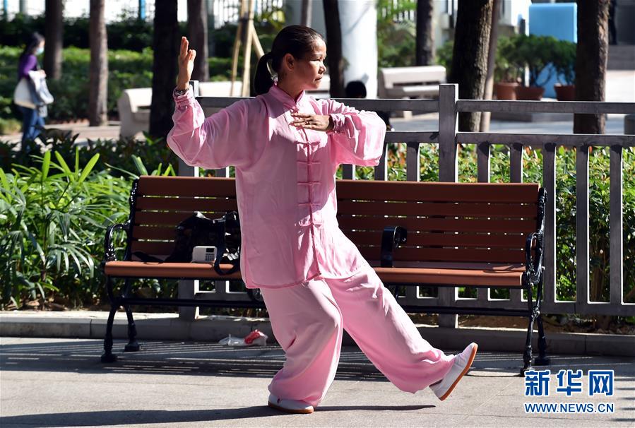 3月23日,市民在公园内锻炼身体。 新冠肺炎疫情下,香港民众积极进行多种形式的体育运动。 新华社记者 卢炳辉 摄