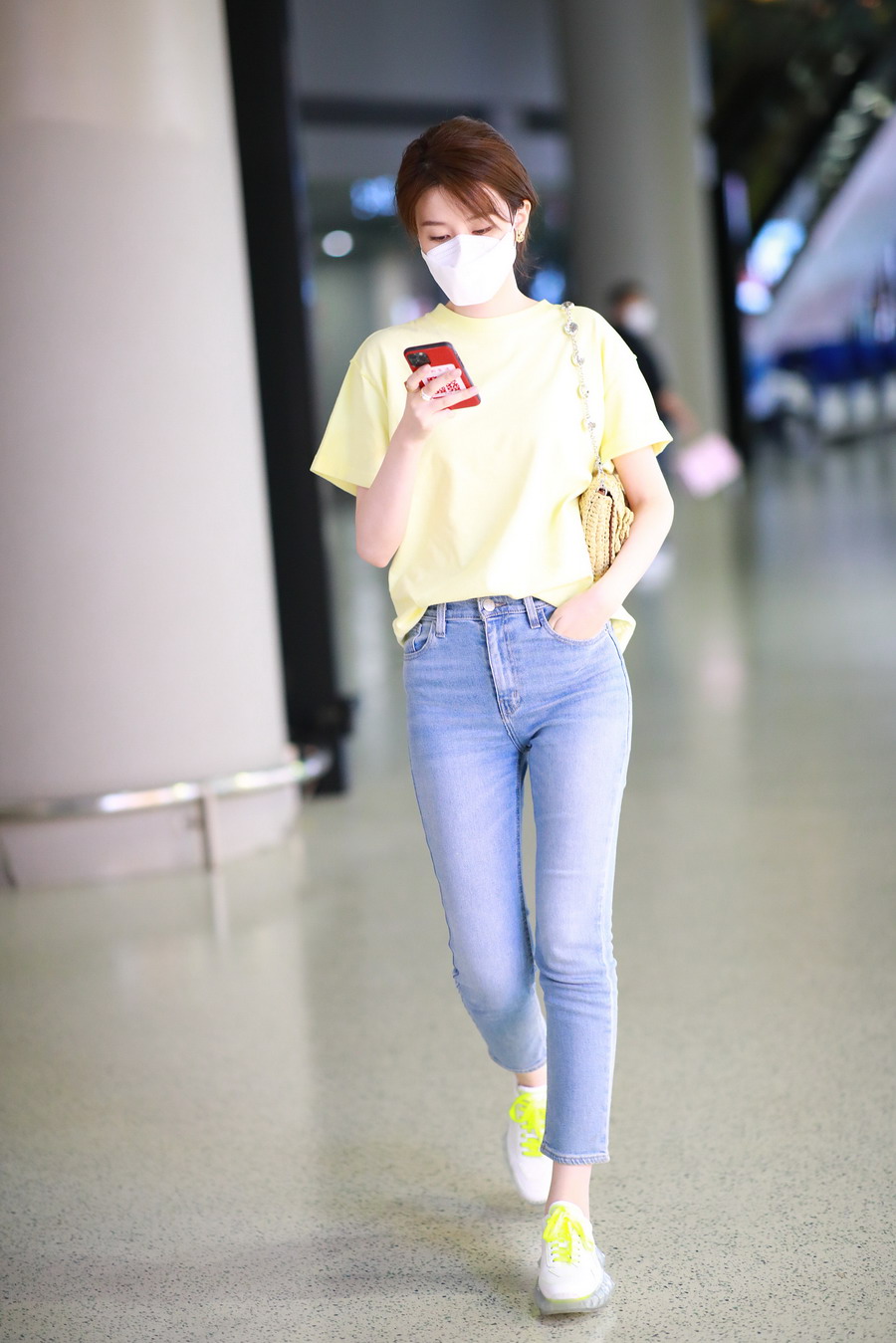 一秒入夏?乔欣私服穿搭堪称“少女模板“ 黄色短T简约清新显元气活力