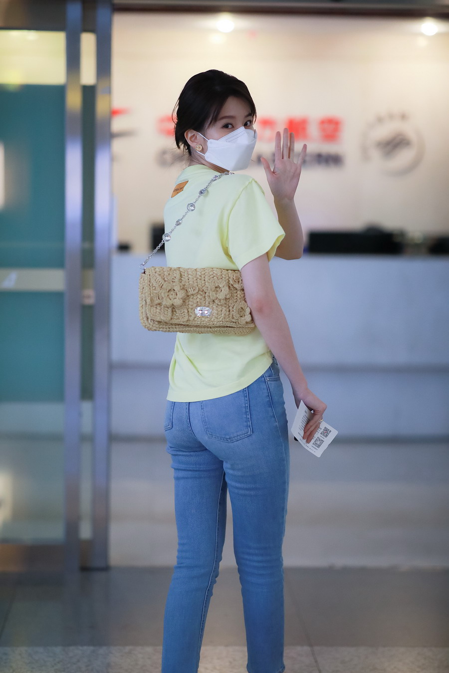 乔欣黄色短T简约清新显元气活力。
