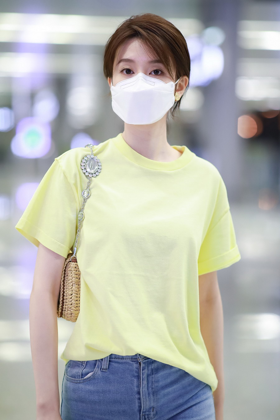 一秒入夏?乔欣私服穿搭堪称“少女模板“ 黄色短T简约清新显元气活力
