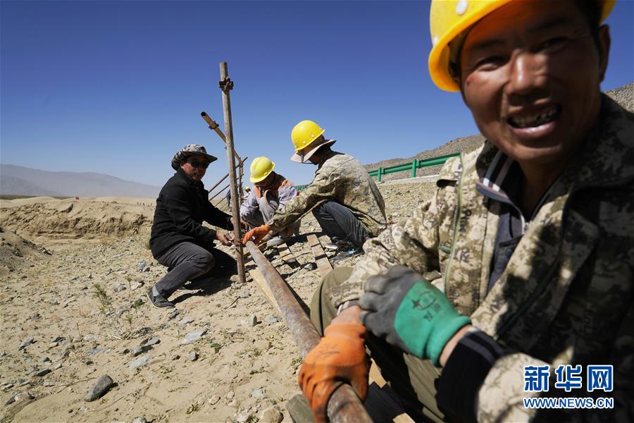 10月17日,工作人员在扎囊国家沙漠公园施工。新华社记者普布扎西摄