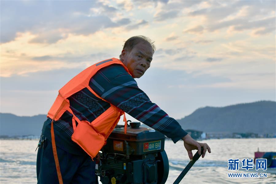 3月26日,福建漳州东山县岐下村村民陈炎松驾驶着小舢板由鱼骨沙洲景点返回码头。新华社记者姜克红摄