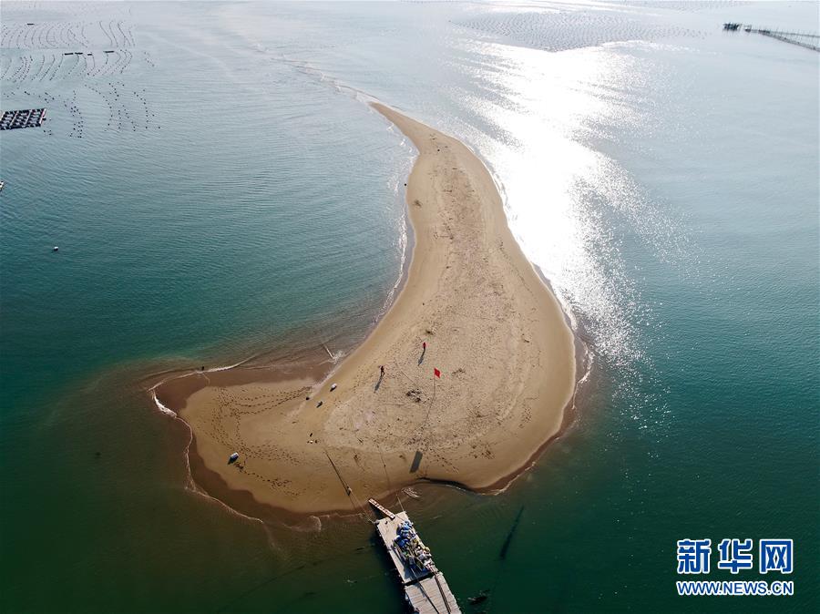 这是3月26日拍摄的福建漳州东山县岐下村附近海域的鱼骨沙洲(无人机照片)。新华社记者姜克红摄
