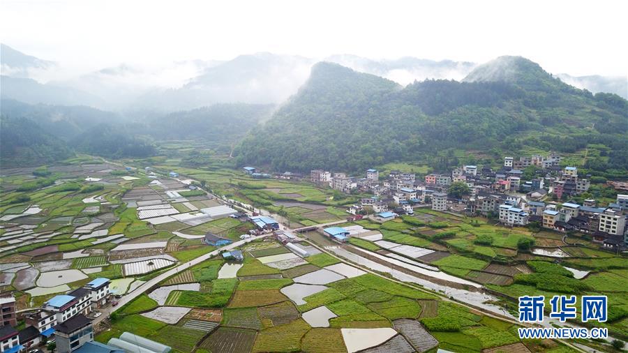 当日,在贵州省黔东南苗族侗族自治州,一场春雨过后,村庄、山川、田野在薄雾中若隐若现,美若画卷。