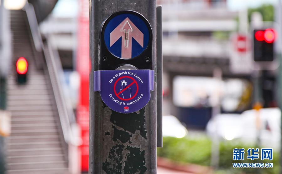 3月30日,在澳大利亚悉尼,为应对疫情,行人过街按钮被停用。随着澳大利亚新冠肺炎确诊病例数不断增多,澳大利亚总理莫里森29日宣布继续强化疫情防控措施,包括限制公共聚集人数最多为两人。新华社记者白雪飞摄