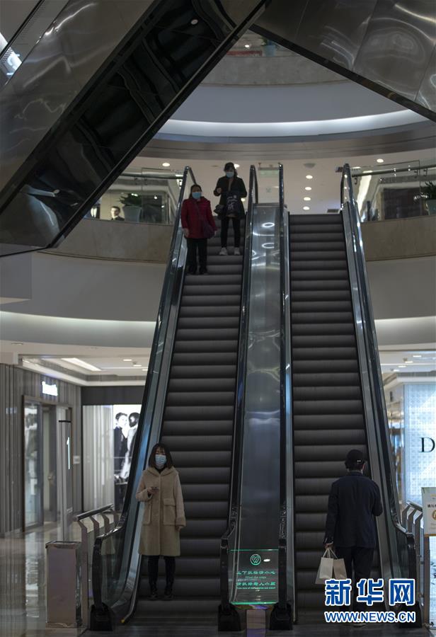 3月30日,在武商国际广场,顾客乘坐滚梯。当日,武汉市多家商场开门迎客。新华社记者费茂华摄