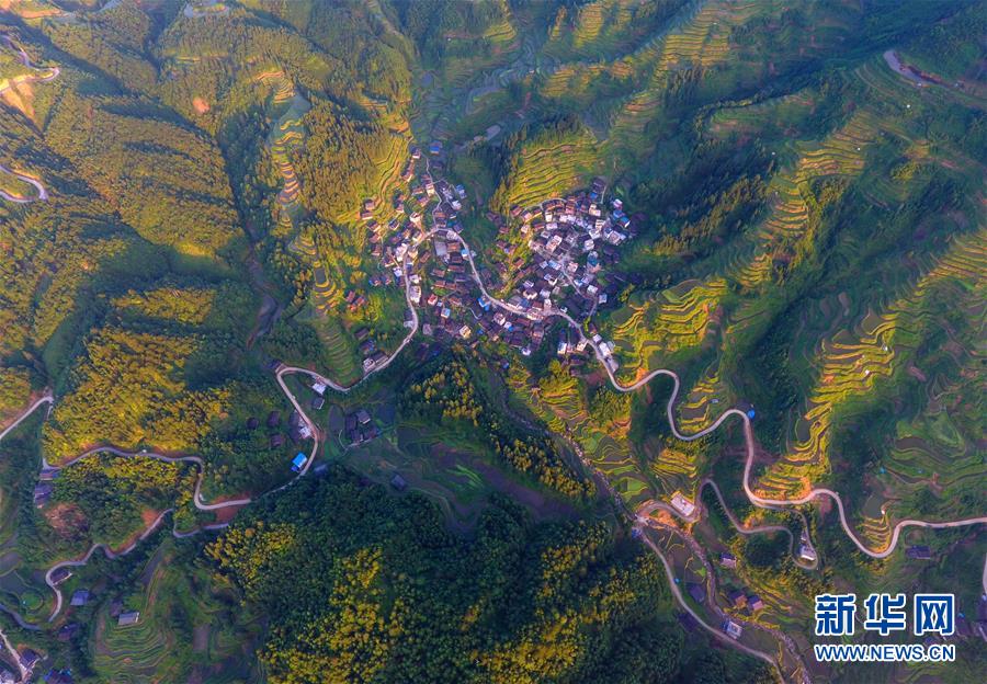 这是融水苗族自治县杆洞乡归江村的村屯公路(6月19日无人机拍摄)。新华社记者黄孝邦摄