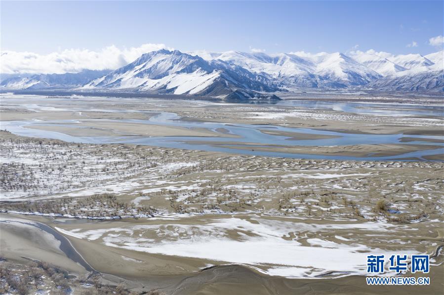 这是3月24日拍摄的雅鲁藏布江雪景(无人机照片)。当日,西藏拉萨及周边地区迎来降雪,雅鲁藏布江两岸银装素裹,分外美丽。新华社记者詹彦摄