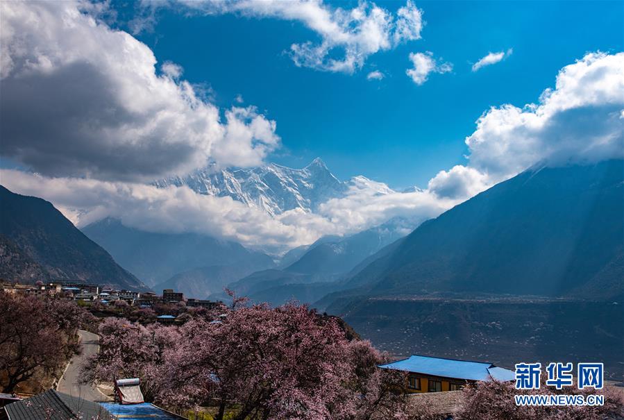 南迦巴瓦峰下盛开的桃花(4月1日摄)。新华社记者侯捷摄