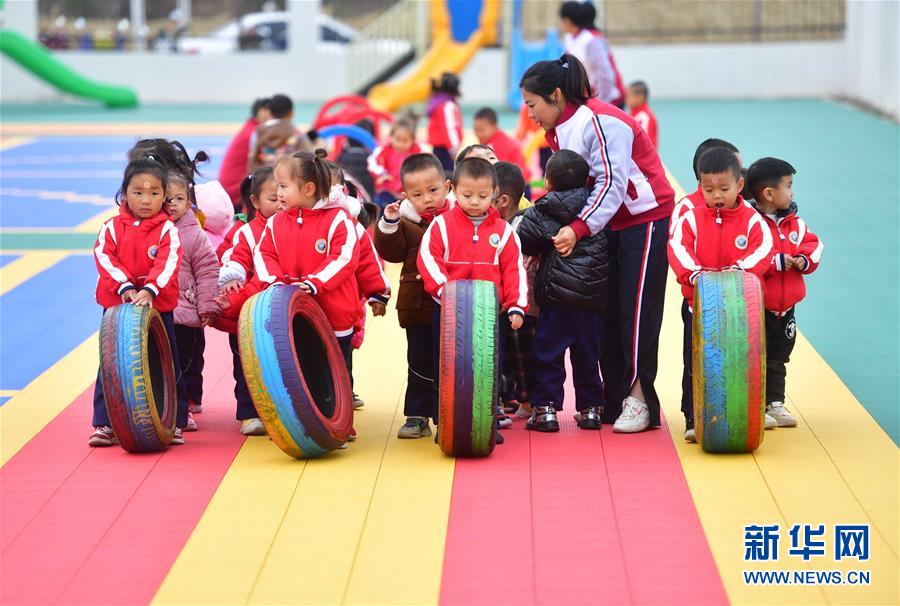 在融安县遂融幼儿园,搬迁到县城的孩子们在户外玩耍(2019年12月31日摄)。新华社记者黄孝邦摄