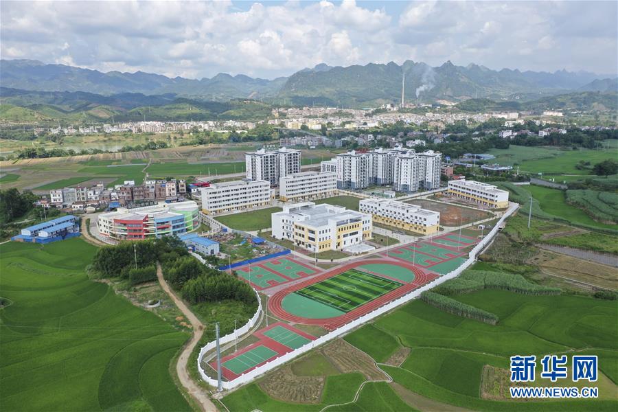 这是位于广西田东县思林镇的一处易地扶贫搬迁安置点(无人机照片,2019年8月28日摄)。新华社记者曹祎铭摄