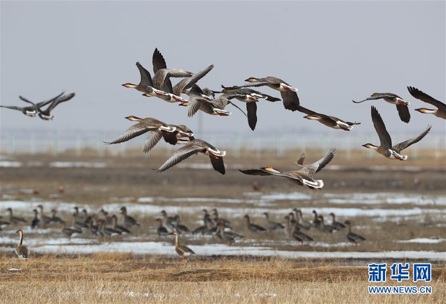 这是4月1日在张北县黄盖淖国家湿地公园拍摄的候鸟。 新华社记者杨世尧摄